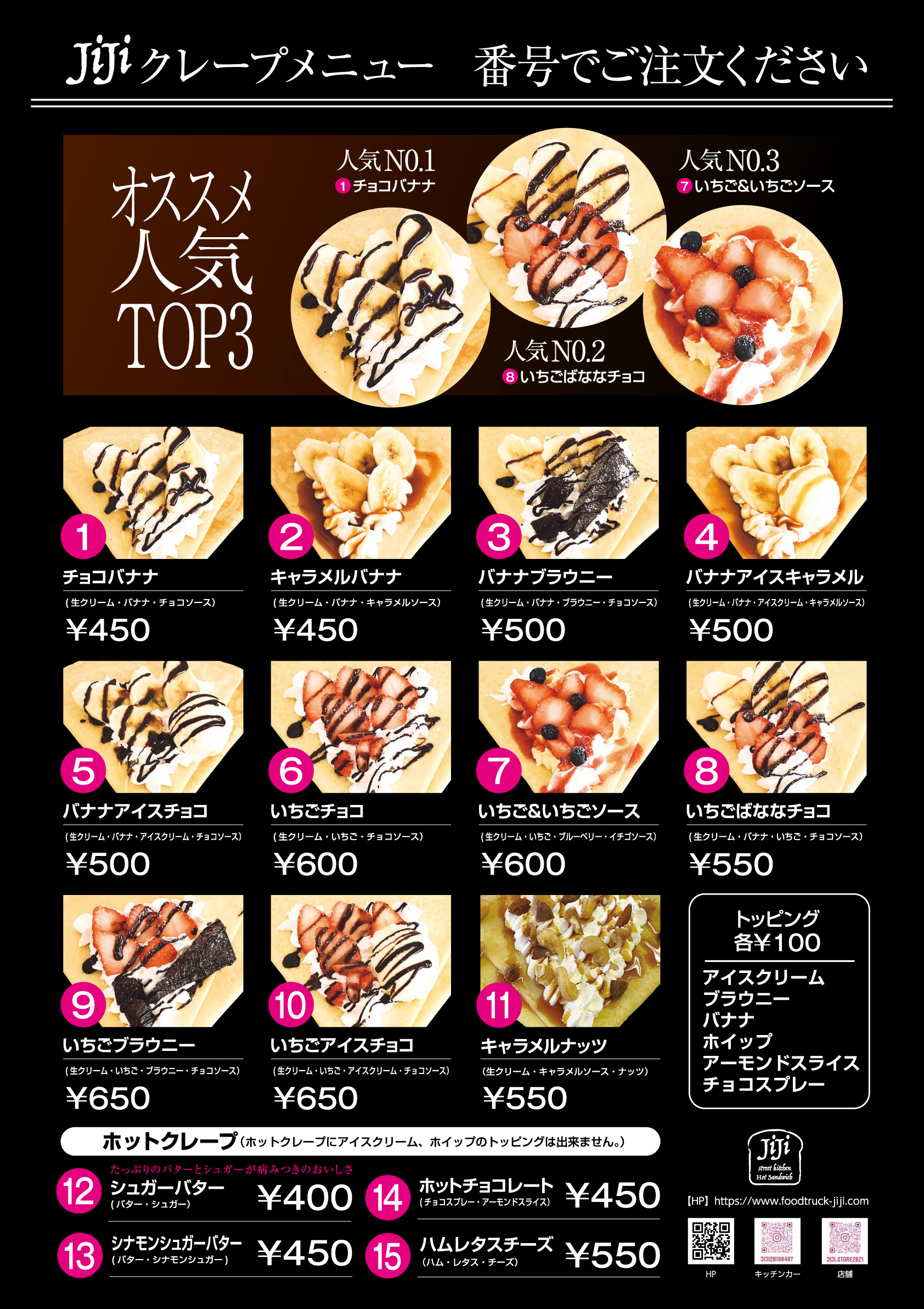 ※キッチンカーのメニューです