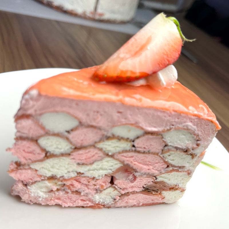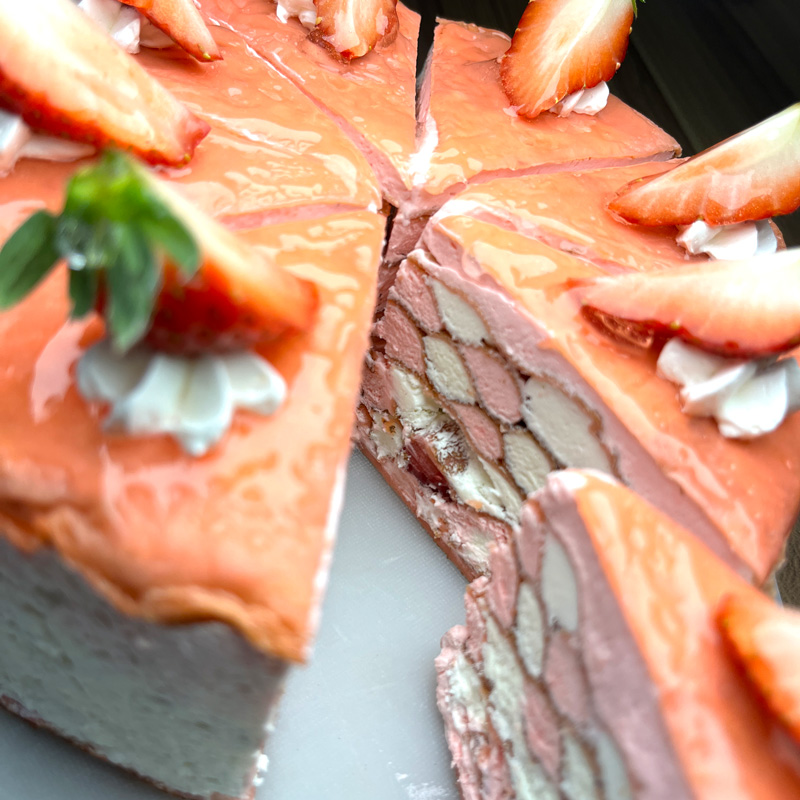 道産食材にこだわり、特に生クリームは最高級のものを使用しています見た目がとても華やかなあみあみ模様のミルクレープです。みんなが集まるシーンをかわいく演出。1枚1枚薄く薄く焼いたミルクレープ専用の生地をパティシエが丁寧に組み立てました。フォークがスッと入る感覚をお楽しみください。こちらの商品はカットした状態のものをホールにしてお届けいたします。ご家庭用で1個から解凍して食べられます。来客時に備えて保存しておくことも可能です。