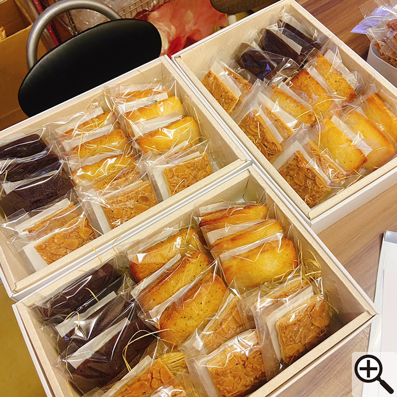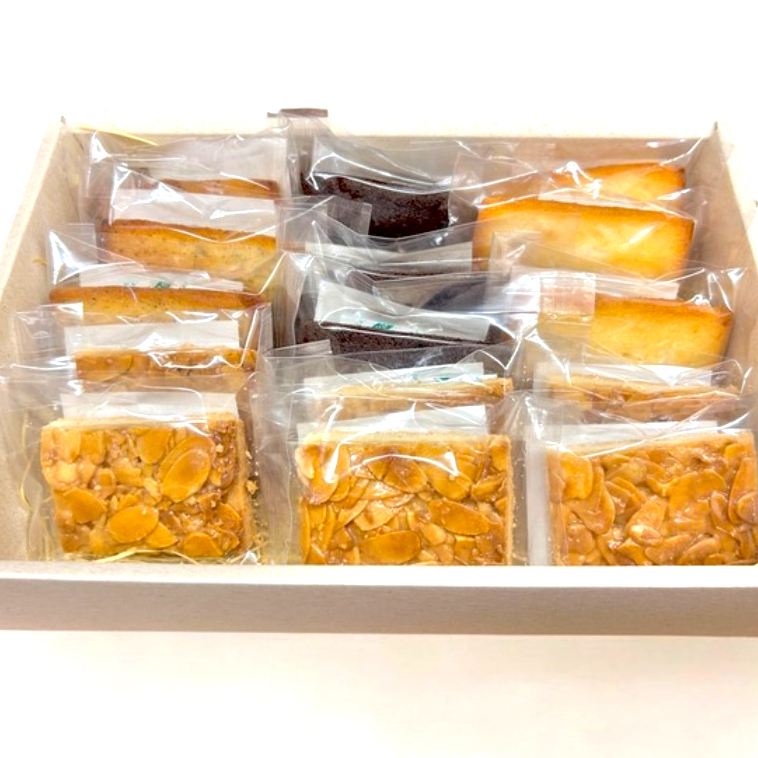 フィナンシェプレーン3個、ココア3個、紅茶3個、フロランタン6個